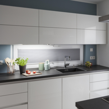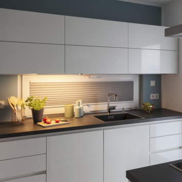 De Calina Switch Tone DIM 60 LED-onderkastarmatuur zorgt voor optimale lichtomstandigheden en maximaal lichtcomfort in de keuken. Dankzij de Switch Tone-technologie kan het LED-licht traploos van kleur veranderen door simpelweg aan de schakelaar te draaien.Terwijl gezellig warm wit licht uitnodigt om te ontspannen, is koel wit daglicht ideaal als werklamp. Zo stel je precies de juiste lichttoon in voor elke stemming. Door opnieuw te drukken en te draaien, dimt het armatuur ook in de laatst geselecteerde lichtkleur, zodat je de helderheid van het licht kunt aanpassen aan behoefte. Ook de memory-functie, die de laatst geselecteerde lichtkleur en dimniveau opslaat, zorgt voor nog meer comfort. Calina licht meteen op als je de lade opentrekt op de kastdeur opent. De lamp heeft een geïntegreerde ledlichtbron van 8 watt met een lichtopbrengst van 420 lumen.