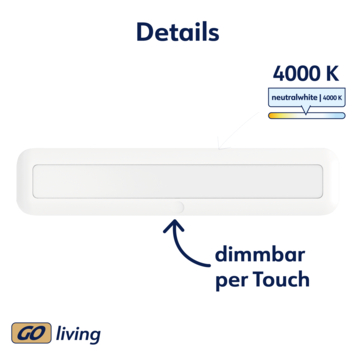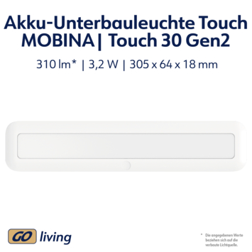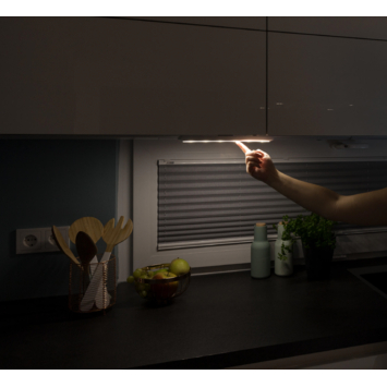 Mobina Push 30 is een witte onderbouwlamp van Müller-licht, ideaal voor bijvoorbeeld onder je keukenkastjes. De draadloze lamp heeft een ingebouwde ledlichtbron van 2 watt die zorgt voor een neutraal wit licht met een lichtopbrengst van 200 lumen. De installatie is eenvoudig door een zelfklevende strip.Je kunt de lamp aan- en uitzetten met de grote schakelaar. Aan de zijkant van de lamp is er nog een schakelaar waarmee je de automatische uitschakeltijd kunt instellen: 3 of 15 minuten. Mobina Push 30 is oplaadbaar via de meegeleverde USB-kabel. Volledig opgeladen kan de lamp tot 3 uur branden. De laadtijd bedraagt ook 3 uur.