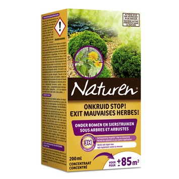 Naturen onkruid stop! is een onkruidbestrijder (200 ml) die ook mos bestrijdt voor gebruik onder bomen & sierplanten. De geconcentreerde onkruidbestrijder biedt al zichtbaar resultaat na 3 uur en is gemaakt op basis van actieve bestanddelen die je ook in de natuur terugvindt. Mmoi meegenomen: na 1 dag kan je desgewenst al weer herplanten.