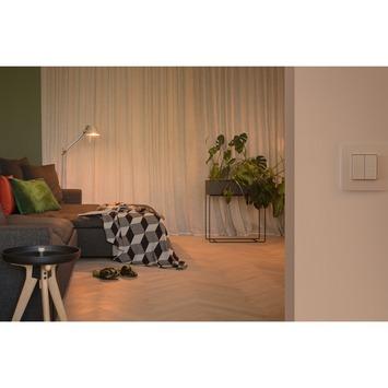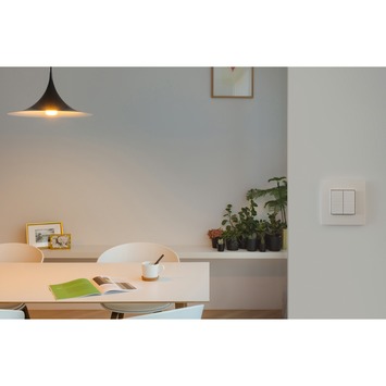 Het huis van de toekomst? Met de Niko Dimschakelaar, die onderdeel is van de Philips Hue verlichting, zet je de eerste stapjes in die richting. Philips Hue is een innovatie vanuit Philips gericht op de verlichting in je huis en onlosmakend verbonden is met dit product. Het verlichtingsysteem kan door de bijbehorende 'Philips Hue app' bediend worden vanaf bijvoorbeeld je smartphone of tablet. Door middel van de Niko Dimschakelaar kun je voortaan de verlichting van de Philips Hue niet alleen in- en uitschakelen, maar kun je ook voorgeprogrammeerde lichtscènes dimmen of juist oproepen. Eerder kon alleen degene die de app had, de lampen bedienen, maar met deze ledschakelaar kan elke bezoeker communiceren met het lichtensysteem. De Niko Dimschakelaar Philips Hue is verkrijgbaar in 2 kleuren: antraciet en wit. De schakelaar valt door zijn design en kleur niet op in je interieur. Dit is de witte versie. De dimschakelaar werkt op kinetische energie, waardoor je geen batterijen nodig hebt. Per Philips Hue Bridge kunnen er maximaal 25 Niko schakelaars gekoppeld worden. De afmetingen van de schakelaar zijn: lengte en breedte 8,5 cm, diepte 1,5 cm. De schakelaar is makkelijk te monteren door middel van schroefjes of dubbelzijdige tape.