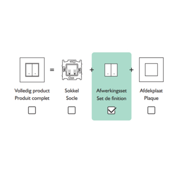Maak het schakelmateriaal compleet door het basiselement, de bijbehorende toets voor de afwerking en tot slot de afdekplaat bij elkaar aan te schaffen.
