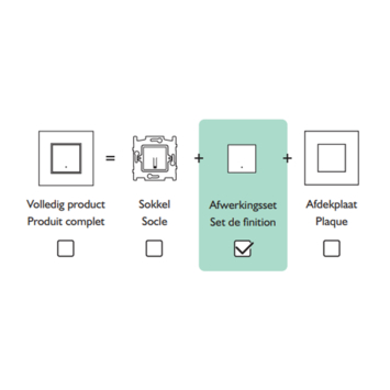 Maak het schakelmateriaal compleet door het basiselement, de bijbehorende toets voor de afwerking en tot slot de afdekplaat bij elkaar aan te schaffen.