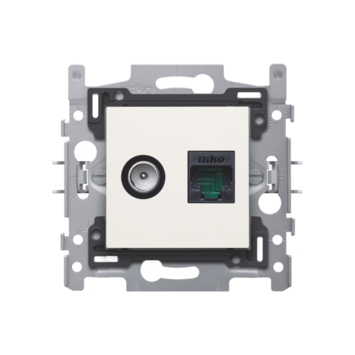 Met dit Niko coax RJ45 stopcontact kunt u op 1 plek, ofwel in 1 enkelvoudige inbouwdoos, een aansluiting maken voor zowel coax/TV/FM als voor Internet. Het coax gedeelte is een zogenaamde EDU versie = enkelvoudig (''alleen in'') = geschikt voor aansluiten van 1 TV/FM toestel, niet geschikt om door te lussen naar andere coax stopcontacten. Het stopcontact is goedgekeurd Telenet Interkabel en VOO. Het RJ45 aansluitpunt CAT6 UTP dient om netwerkverbinding te maken voor telefonie, Ethernet, IP of internettoepassingen. Het stopcontact is geschikt voor montage in afdekplaten Niko Original of Intense.