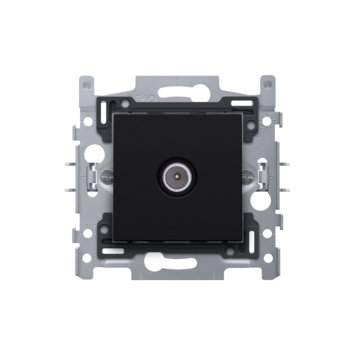 Dit stopcontact TV Intense Matt Black van Niko bestaat uit een sokkel en een centraalplaat. De sokkel is uitgerust met schroefklemmen en klauwbevestiging. Het stopcontact is voorzien van één enkelvoudige mannelijke coax contactingang. Op de centraalplaat staat tevens het televisie-icoon aangeduid.