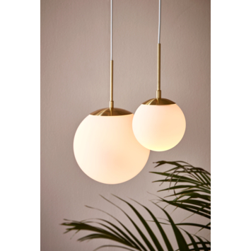De Grant hanglamp past in een van de belangrijkste hedendaagse designtrends met het gebruik van messing en wit opaalglas. Een elegant detail is het baldakijn van messing aan de bovenkant van de lamp, wat het geheel af maakt. Grant is mooi, zowel individueel als in clusters van verschillende. Combineer ze met andere formaten van deze hanglamp in de serie.