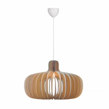 Dit armatuur is gemaakt van hout en heeft een IP20-classificatie. Hierdoor is het geschikt voor gebruik in droge ruimtes zoals de eetkamer, woonkamer of hal. De lichte houtkleur en het open ontwerp maken het een stijlvolle aanvulling op interieurs die natuurlijke materialen en luchtige vormen combineren.