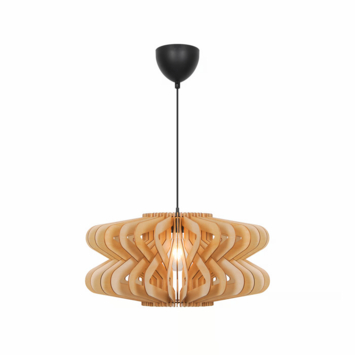 De lamp is volledig uitgevoerd in hout en heeft een IP20-beschermingsgraad, geschikt voor droge ruimtes in huis zoals de eetkamer, woonkamer of een werkkamer. De natuurlijke kleur van het hout geeft een zachte uitstraling en past perfect bij een Scandinavisch, boho of modern interieur.