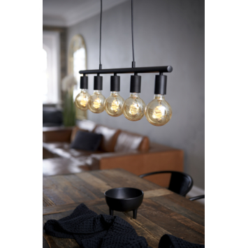 Met een industrieel en minimalistisch design kun je de Paco-serie perfect naar je persoonlijke smaak stylen. Voeg een grote en decoratieve gloeilamp toe om de perfecte, gezellige sfeer te creëren. De combinatie van zwart metaal en een decoratieve gloeilamp zorgt voor een trendy en industriële designuitdrukking.