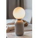 De gedraaide vormen kenmerken deze mooie tafellamp, die symbool staat voor elegant design. Tegelijkertijd vormt de mannelijke voet van mat metaal een leuk contrast met het chique koepelvormige glazen scherm, dat zorgt voor visueel volume en een zacht licht.