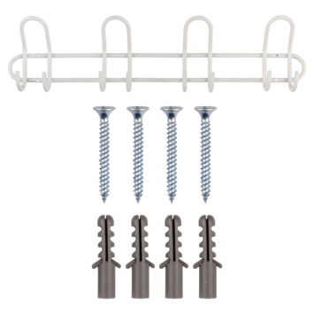 De kapstok wordt geleverd met schroeven en pluggen, zodat je hem eenvoudig aan de muur kunt bevestigen. Dankzij het compacte formaat neemt hij weinig ruimte in en is hij perfect geschikt voor gebruik in de hal, badkamer of keuken. De witte kleur zorgt voor een frisse, neutrale uitstraling die makkelijk te combineren is met verschillende interieurstijlen.