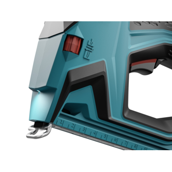 Daarnaast beschikt deze accu tacker over handige functies zoals een nietniveau-indicator, zodat je altijd zicht hebt op hoeveel nietjes er nog zijn, en een geïntegreerde nietenschuif voor snel herladen. Met de afstandsaanslag plaats je moeiteloos een rij nietjes op gelijke hoogte, en de ontwerplijn aan de voorzijde toont precies waar de nietjes worden geplaatst.