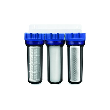 De O'Pure Triplex filterkit filtert regenwater in drie stappen voor optimaal schoon water. Eerst vangt de 80 µm voorfiltratie grove vuildeeltjes op, daarna verwijdert de 25 µm fijnfiltratie kleinere deeltjes. Tot slot zorgt het actieve koolpatroon voor geur- en kleurloos water, geschikt voor uiteenlopende toepassingen in huis of tuin. De kit wordt compleet geleverd met beugel, schroeven, dichtingen, sleutel en teflon, zodat installatie overzichtelijk en snel verloopt. Met de 3/4" aansluiting monteer je de filter eenvoudig op bestaande leidingen. Zo heb je direct toegang tot schoner regenwater en blijft het onderhoud praktisch en eenvoudig. Shop deze O'Pure Triplex filterkit bij GAMMA.