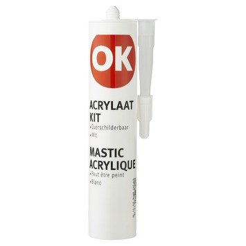 De OK acrylaatkit is supergoedkoop, super overschilderbaar en superwit. Wat wil je nog meer? De kitklus zal je helaas zelf moeten klaren.