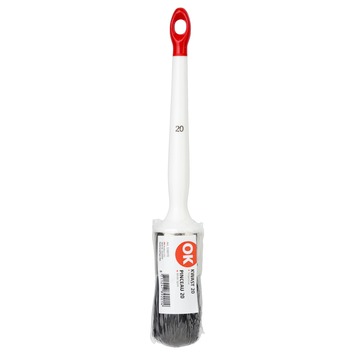 De OK borstel rond voor solventgedragen verf maat 20 is een ronde borstel die je gebruikt voor verf op solventbasis. De borstel is 20 millimeter breed waardoor je er makkelijk grotere oppervlakken of brede randen mee kan schilderen. Je gebruikt deze borstel op gladde of ruwe ondergronden zoals multiplex of gips. De haren zijn van natuurlijk materiaal dat geschikt is voor verf op basis van solvent. De kunststof steel ligt stevig in de hand tijdens het werken. Je herkent deze borstel aan het rode uiterlijk dat aangeeft dat hij geschikt is voor alkydverf.