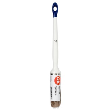 De OK borstel rond voor watergedragen verf maat 10 is een ronde borstel die je gebruikt voor verf op waterbasis. Met een breedte van 10 millimeter is deze borstel geschikt voor precisiewerk zoals randen of kleine oppervlakken. Je kan hem gebruiken op zowel gladde als ruwe ondergronden zoals MDF en baksteen. De borstel heeft synthetische haren die goed werken met watergedragen verf omdat ze een gelijkmatige verflaag aanbrengen en weinig haren verliezen. De steel is gemaakt van kunststof en ligt stevig in de hand. Dankzij het blauwe uiterlijk zie je meteen dat deze borstel bedoeld is voor acrylverf.