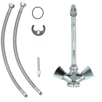 De OK kranen vormen ons basis assortiment. Alle kranen uit deze serie zijn chroom afgewerkt. Deze OK Keukenkraan 2-knops Chroom is voorzien van een tweeknops bediening, waarmee de watertoevoer op een gemakkelijke wijze kan worden bediend. De kraan wordt geleverd met bijbehorend aansluitmateriaal en 2 jaar garantie.