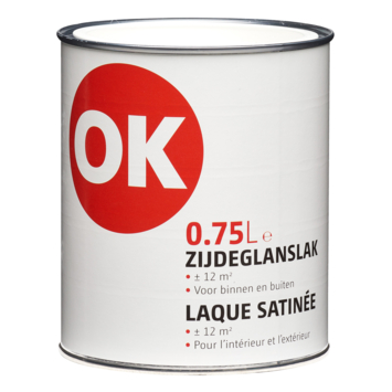 OK lak wit zijdeglans 750 ml is een lak op terpentinebasis. Deze zijdeglans lak is in combinatie met de juiste grondverf geschikt voor op hout, voorbewerkt metaal en harde kunststoffen voor zowel binnenshuis als buitenshuis. Lichte kleuren kunnen na verloop van tijd geel worden op plaatsen die niet veel in contact komen met daglicht. Voor deze plaatsen kan je het beste een lak op waterbasis gebruiken. De inhoudsmaat van 750 ml volstaat voor het schilderen van een oppervlakte van ongeveer 12 m2.