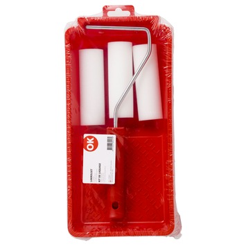 De OK lakset universeel 10 cm (5-delig) gebruik je voor verf op water- en solventbasis. De set bestaat uit vijf delen: een schuimroller van 5 centimeter met beugel, een schuimroller van 10 centimeter met beugel en een verfbak. Met de rollers kan je hout en metaal schilderen op een gladde of licht ruwe ondergrond. De schuimrollers zijn gemaakt van polyethyleen en zorgen voor een gelijkmatige verdeling van de verf. Dankzij de werkbreedte van 10 centimeter kan je vlot grotere oppervlakken behandelen en met de smallere roller werk je netjes in hoeken en randen.