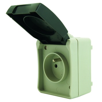 Dit OK tweepolig opbouwstopcontact met aarding is spatwaterdicht en grijskleurig. Pakket bestaat uit 4 stuks.
