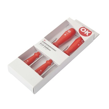 Je zoekt een goedkope schroevendraaierset om van alles te schroeven? Haal de vierdelige schroevendraaierset van OK in huis! Goed om te weten: alle klusspullen van OK zijn goedkoop, maar doen wat je ervan verlangt. Ideaal voor huis-tuin-en-keuken-klussen, dus!