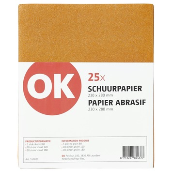 OK schuurpapier assorti K80, K120 en K180 (25 stuks)