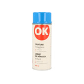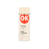 OK spuitlak blank is een sneldrogende alkyd lak voor ondergronden van hout, metaal, aluminium, glas, steen en diverse soorten kunststof. Uitermate geschikt als finish. Deze spuitlak is zowel binnen als buiten te gebruiken. Eén spuitbus van 400 ml volstaat voor het spuiten van een oppervlakte van 1,5 tot 2 m2. Droog na 15 minuten.