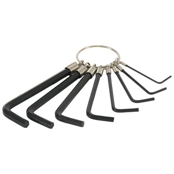 Prima setje inbussleutels, handig de sleutels uit te nemen voor individueel gebruik door het sluitveertje. de sleutels zijn van redelijke kwaliteit, bij veel gebruik zie je dat de kop slijt, voor de prijs valt daar echter niet over te klagen, én je raakt ze toch redelijk snel kwijt als je ze los haalt.