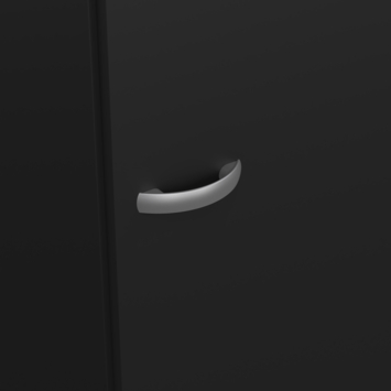 De Cosmo kast is vervaardigd uit gelakt spaanplaat en afgewerkt in een zwarte tint. Dit materiaal is stevig en onderhoudsvriendelijk, terwijl de neutrale kleur ervoor zorgt dat de kast gemakkelijk te combineren is met andere meubels.