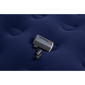 Deze Bestway Power Touch oplaadbare luchtpomp neem je overal mee naartoe! Deze luchtpomp kan artikelen opblazen en leeg laten lopen. Deze luchtpomp is oplaadbaar d.m.v. ingebouwde 1600mAh rechargeable Li-ion batteries met batterijduur lampje. Ook bevat het een LED lamp met 3 standen en SOS modus plus een powerbank functie: 5V 2A output. Volle batterij duur: ongeveer 30 minuten. Inclusief 3 opzetstukken, USB-A naar USB-C oplaadkabel en draagtas. Maximale capaciteit: 200 L/min.