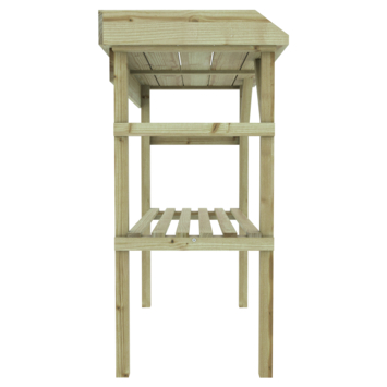 Deze tuinwerktafel is gemaakt van geïmpregneerd vurenhout, dat een goede basisbescherming biedt tegen weerselementen. De oppottafel Celeste vurenhout kan gebruikt worden bij het poten van planten en andere tuinwerkzaamheden. Door de prettige hoogte is het gemakkelijk werken voor de echte tuinier. Daarnaast beschikt de tafel over een opbergruimte voor je tuingereedschap.