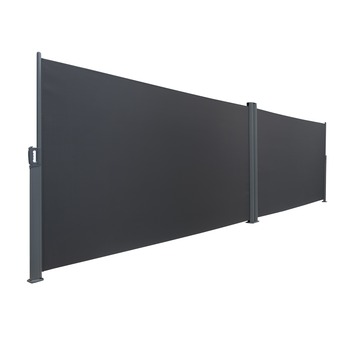 Bye bye wind (en pottenkijkers!) met dit dubbele oprolbare windscherm van Fikszo. Het scherm is gemaakt uit stevige polyester in de kleur antraciet en is tegelijkertijd scheur- en UV-bestendig. Rol het scherm uit en zet waar je wil of bevestig aan je muur. Handig in je tuin, op je terras, ... Ook verkrijgbaar als enkel windscherm.