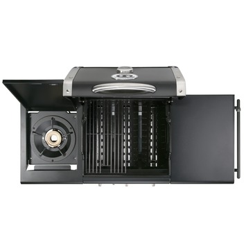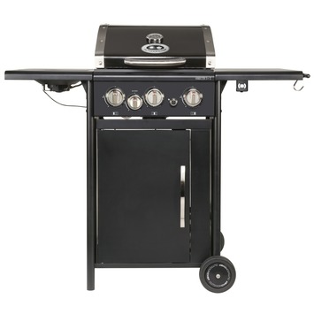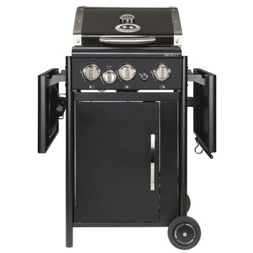 De Hamilton gasbarbecue 3+G van Outdoor Chef is gemaakt uit staal in de kleur zwart. De stijlvolle buitenkeuken heeft een kookoppervlak van 44,5 op 46,5 centimeter en is bijgevolg geschikt voor 10 personen. Beschikt ook over 3 branders (= 1 hoofdbrander en 2 zijbranders) met een totaal vermogen 7.500 watt, een ontsteking, een thermometer, een deksel en 4 poten met wielen. Ter info: de barbecue zelf is 110 centimeter hoog. Ook verkrijgbaar in andere afmetingen.