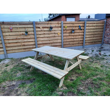 Deze houten picknicktafel past in vrijwel iedere tuin en is geschikt voor veel verschillende gelegenheden. De picknicktafel is gemaakt van geïmpregneerd hout, wat een goede basisbescherming biedt tegen weerselementen. Wil je je picknicktafel een leuk kleurtje geven? Dat kan! Want deze picknicktafel is prima overschilderbaar. Bovendien is de picknicktafel zeer stevig en heeft hij een robuuste uitstraling.