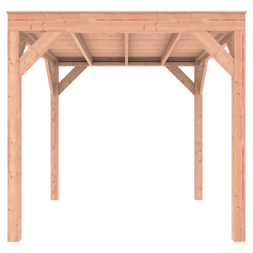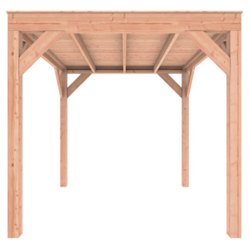 Deze modern vormgegeven overkapping biedt een perfecte balans tussen uitstraling en functionaliteit.De totale afmetingen zijn 245 cm hoog, 255 cm breed en 255 cm diep en de doorloophoogte is 224 cm.Zoek je een overdekte plek voor ontspanning in de tuin? Deze sfeervolle overkapping is een aanwinst voor iedere tuin.Klaar voor een groene toekomst:Dit modern vormgegeven tuinverblijf is speciaal ontworpen om zonnepanelen of een sedum dak te kunnen ondersteunen. Hierdoor is dit verblijf een duurzame en milieuvriendelijke aanvulling op uw tuin.Zelf aan de slagDankzij de duidelijke opbouwomschrijving, meegeleverde bevestigingsmaterialen en op maat gezaagde onderdelen, is de installatie van dit tuinhuis een haalbare klus voor iedere gemiddelde doe-het-zelver. Dak bekleding:Wij raden aan om deze Douglas overkapping te voorzien van een EPDM dakbekleding voor een lekvrij dak (Let op: los bij te bestellen).Onderhoud:Bij het kopen van een overkapping is onderhoud een aandachtspunt… Met Douglas hout heb je het goed voor elkaar, Douglas is namelijk van zichzelf al een sterke houtsoort. Het gaat zonder extra behandeling eenvoudig 10 tot 15 jaar mee. Om de maximale levensduur te verlengen kun je gebruik maken van speciale Douglas beits of Douglas olie en elke 2 jaar opnieuw beitsen of oliën.