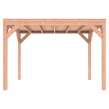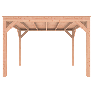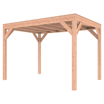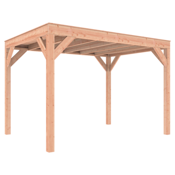 Deze modern vormgegeven overkapping biedt een perfecte balans tussen uitstraling en functionaliteit.De totale afmetingen zijn 245 cm hoog, 355 cm breed en 255 cm diep en de doorloophoogte is 224 cm.Zoek je een overdekte plek voor ontspanning in de tuin? Deze sfeervolle overkapping is een aanwinst voor iedere tuin.Klaar voor een groene toekomst:Dit modern vormgegeven tuinverblijf is speciaal ontworpen om zonnepanelen of een sedum dak te kunnen ondersteunen. Hierdoor is dit verblijf een duurzame en milieuvriendelijke aanvulling op uw tuin.Zelf aan de slagDankzij de duidelijke opbouwomschrijving, meegeleverde bevestigingsmaterialen en op maat gezaagde onderdelen, is de installatie van dit tuinhuis een haalbare klus voor iedere gemiddelde doe-het-zelver. Dak bekleding:Wij raden aan om deze Douglas overkapping te voorzien van een EPDM dakbekleding voor een lekvrij dak (Let op: los bij te bestellen).Onderhoud:Bij het kopen van een overkapping is onderhoud een aandachtspunt… Met Douglas hout heb je het goed voor elkaar, Douglas is namelijk van zichzelf al een sterke houtsoort. Het gaat zonder extra behandeling eenvoudig 10 tot 15 jaar mee. Om de maximale levensduur te verlengen kun je gebruik maken van speciale Douglas beits of Douglas olie en elke 2 jaar opnieuw beitsen of oliën.