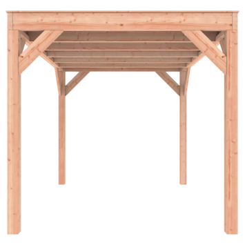 Mooie en stevige overkapping, maar het in elkaar zetten gaat niet vanzelf! Geen enkel gat is voorgeboord en de latten van de dakconstructie dienen nog op maat gezaagd te worden. Dit staat nergens vermeld in de handleiding en geeft je toch wel wat extra werk! Omdat het Douglas hout een redelijk dichte structuur heeft, krijg je de schroeven er met een gewone accu schroefmachine niet doorheen! Een tip: "Zet het kader met 2 of 3 personen en zeker niet alleen als je een beetje van je rug houdt! Alles is redelijk zwaar." Éénmaal de overkapping staat is het een echte eyecatcher en een zeer kwalitatief product!