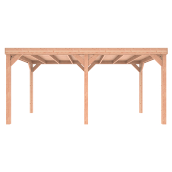 Deze Douglas terrasoverkapping is een toegevoegde waarde voor iedere tuin. De karakteristieke look die Douglas hout in jouw tuin brengt, zorgt voor een natuurlijke en vooral sfeervolle uitstraling. Het Douglas hout is een sterke soort tuinhout dat van nature goed bestand is tegen vuil en vocht. Deze houten overkapping is 522 cm breed en 270 cm diep en wordt geleverd inclusief EPDM-folie voor een waterdichte dakbedekking. Het totaalpakket staat extra stevig dankzij de 12x12 cm Douglas palen.