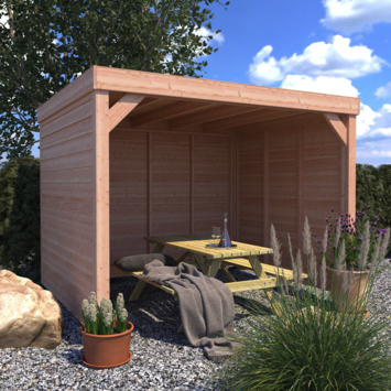 Deze Douglas terrasoverkapping met wanden is een toegevoegde waarde voor iedere tuin. De karakteristieke look die Douglas hout in jouw tuin brengt, zorgt voor een natuurlijke en vooral sfeervolle uitstraling. Het Douglas hout is een sterke soort tuinhout dat van nature goed bestand is tegen vuil en vocht. Deze houten overkapping is 330 cm breed en 270 cm diep en wordt geleverd inclusief EPDM-folie voor een waterdichte dakbedekking. Het totaalpakket staat extra stevig dankzij de 12x12 cm Douglas palen.