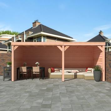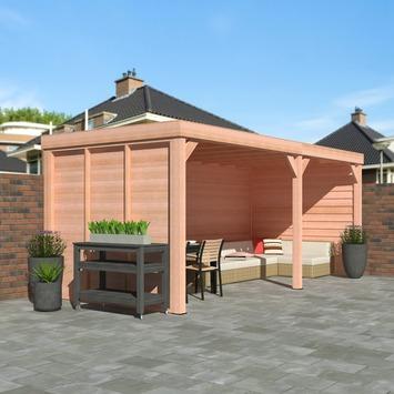 Deze Douglas terrasoverkapping met wanden is een toegevoegde waarde voor iedere tuin. De karakteristieke look die Douglas hout in jouw tuin brengt, zorgt voor een natuurlijke en vooral sfeervolle uitstraling. Het Douglas hout is een sterke soort tuinhout dat van nature goed bestand is tegen vuil en vocht. Deze houten overkapping is 582 cm breed en 270 cm diep en wordt geleverd inclusief EPDM-folie voor een waterdichte dakbedekking. Het totaalpakket staat extra stevig dankzij de 12x12 cm Douglas palen.