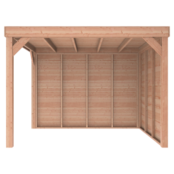 Deze Douglas terrasoverkapping met achterwand en zijwand is een toegevoegde waarde voor iedere tuin. De karakteristieke look die Douglas hout in jouw tuin brengt, zorgt voor een natuurlijke en vooral sfeervolle uitstraling. Het Douglas hout is een sterke soort tuinhout dat van nature goed bestand is tegen vuil en vocht. Deze houten overkapping is 330 cm breed en 270 cm diep en wordt geleverd inclusief EPDM-folie voor een waterdichte dakbedekking. Het totaalpakket staat extra stevig dankzij de 12x12 cm Douglas palen.