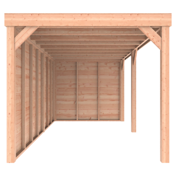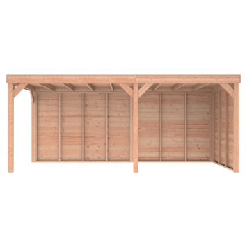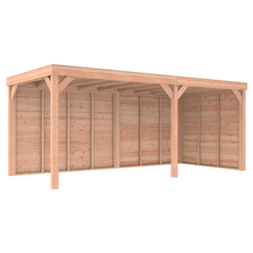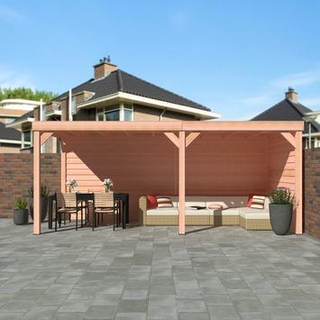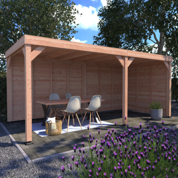 Deze Douglas terrasoverkapping met achterwand en zijwand is een toegevoegde waarde voor iedere tuin. De karakteristieke look die Douglas hout in jouw tuin brengt, zorgt voor een natuurlijke en vooral sfeervolle uitstraling. Het Douglas hout is een sterke soort tuinhout dat van nature goed bestand is tegen vuil en vocht. Deze houten overkapping is 582 cm breed en 270 cm diep en wordt geleverd inclusief EPDM-folie voor een waterdichte dakbedekking. Het totaalpakket staat extra stevig dankzij de 12x12 cm Douglas palen.