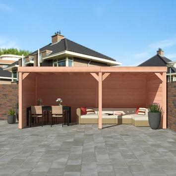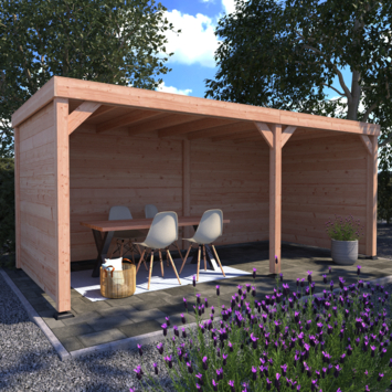 Deze Douglas terrasoverkapping met wanden is een toegevoegde waarde voor iedere tuin. De karakteristieke look die Douglas hout in jouw tuin brengt, zorgt voor een natuurlijke en vooral sfeervolle uitstraling. Het Douglas hout is een sterke soort tuinhout dat van nature goed bestand is tegen vuil en vocht. Deze houten overkapping is 582 cm breed en 270 cm diep en wordt geleverd inclusief EPDM-folie voor een waterdichte dakbedekking. Het totaalpakket staat extra stevig dankzij de 12x12 cm Douglas palen.