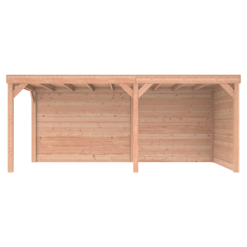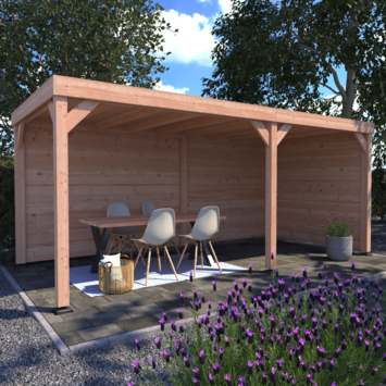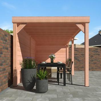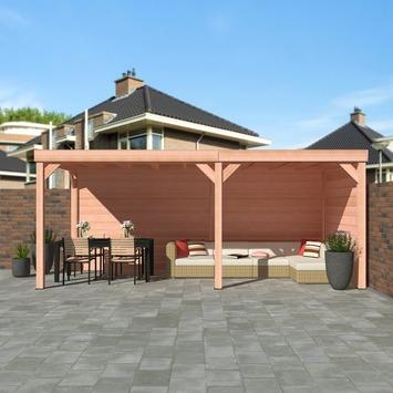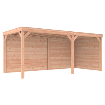 Deze Douglas terrasoverkapping met achterwand en zijwand is een toegevoegde waarde voor iedere tuin. De karakteristieke look die Douglas hout in jouw tuin brengt, zorgt voor een natuurlijke en vooral sfeervolle uitstraling. Het Douglas hout is een sterke soort tuinhout dat van nature goed bestand is tegen vuil en vocht. Deze houten overkapping is 582 cm breed en 270 cm diep en wordt geleverd inclusief EPDM-folie voor een waterdichte dakbedekking. Het totaalpakket staat extra stevig dankzij de 12x12 cm Douglas palen.