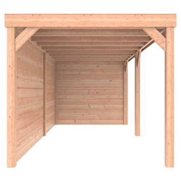 Deze Overkapping Douglas Hout Blank met Blokhutprofiel Achterwand en Zijwand 270x582 cm bij GAMMA bestaat in meerdere varianten. Je kunt de overkapping met een achterwand en een zijwand kopen, maar de overkapping is ook vrijstaand, met 2 zijwanden of met alleen een achterwand verkrijgbaar. Je kunt daarbij ook nog kiezen uit verschillende kleuren en afmetingen. Goede kans dus dat er wat leuks tussen zit.