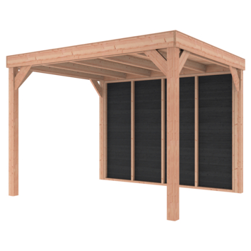 Deze Overkapping Douglas Hout Zwart met Achterwand 270x330 cm bij GAMMA bestaat in meerdere varianten. Je kunt de overkapping met een achterwand kopen, maar de overkapping is ook vrijstaand, met 1 zijwand of 2 zijwanden verkrijgbaar. Je kunt daarbij ook nog kiezen uit verschillende kleuren en afmetingen. Goede kans dus dat er wat leuks tussen zit.