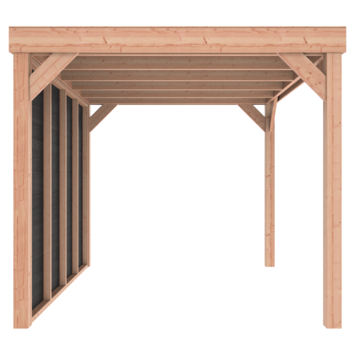 Deze Douglas terrasoverkapping met achterwand is een toegevoegde waarde voor iedere tuin. De karakteristieke look die Douglas hout in jouw tuin brengt, zorgt voor een natuurlijke en vooral sfeervolle uitstraling. Het Douglas hout is een sterke soort tuinhout dat van nature goed bestand is tegen vuil en vocht. Deze houten overkapping is 270 cm breed en 270 cm diep en wordt geleverd inclusief EPDM-folie voor een waterdichte dakbedekking. Het totaalpakket staat extra stevig dankzij de 12x12 cm Douglas palen.