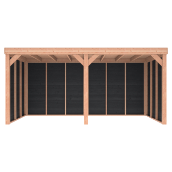 Deze Overkapping Douglas Hout Zwart met Achterwand en 2 Zijwanden 270x522 cm bij GAMMA bestaat in meerdere varianten. Je kunt de overkapping met een achterwand en 2 zijwanden kopen, maar de overkapping is ook vrijstaand, met 1 zijwand of met alleen een achterwand verkrijgbaar. Je kunt daarbij ook nog kiezen uit verschillende kleuren en afmetingen. Goede kans dus dat er wat leuks tussen zit.