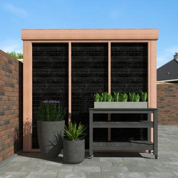 Deze Overkapping Douglas Hout Zwart met Achterwand en 2 Zijwanden 270x582 cm bij GAMMA bestaat in meerdere varianten. Je kunt de overkapping met een achterwand en 2 zijwanden kopen, maar de overkapping is ook vrijstaand, met 1 zijwand of met alleen een achterwand verkrijgbaar. Je kunt daarbij ook nog kiezen uit verschillende kleuren en afmetingen. Goede kans dus dat er wat leuks tussen zit.