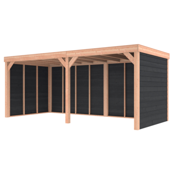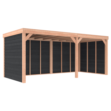 Overkapping Douglas Hout Zwart met Achterwand en 2 Zijwanden 270x582 cm
