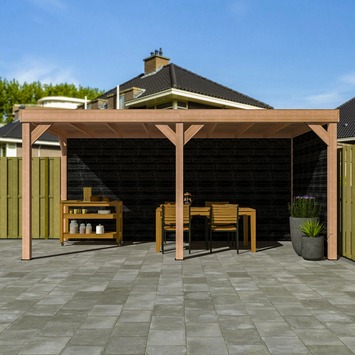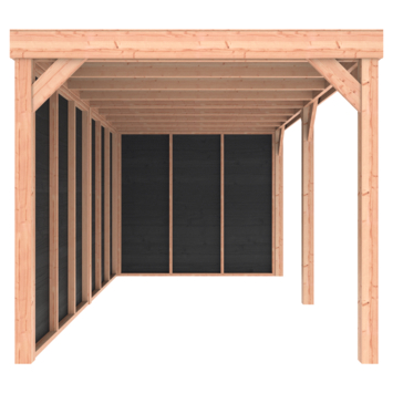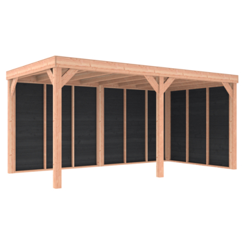 Deze Douglas terrasoverkapping met achterwand en zijwand is een toegevoegde waarde voor iedere tuin. De karakteristieke look die Douglas hout in jouw tuin brengt, zorgt voor een natuurlijke en vooral sfeervolle uitstraling. Het Douglas hout is een sterke soort tuinhout dat van nature goed bestand is tegen vuil en vocht. Deze houten overkapping is 522 cm breed en 270 cm diep en wordt geleverd inclusief EPDM-folie voor een waterdichte dakbedekking. Het totaalpakket staat extra stevig dankzij de 12x12 cm Douglas palen.